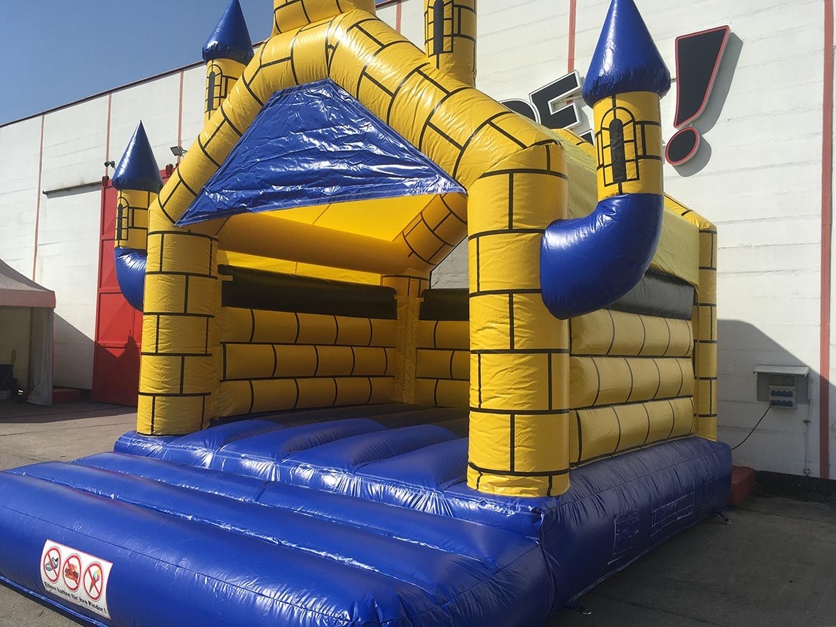 Alle Hüfburgen sind zertifiziert und werden mit einem 1,1 bzw. 1,5 kw Gebläse, einer Transporttasche, einer Genehmigungsurkunde gemäß EN 14960, einer Bedienungs- und Aufbauanleitung, Erdnägel für die Befestigung, ein 10M-Verlängerungskabel und einer Bodenplane vermietet.